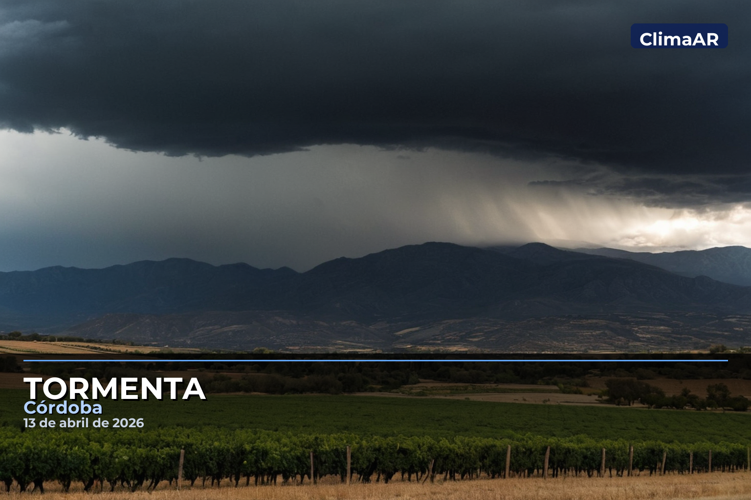 Se recomienda evitar viajar durante la tormenta si es posible, especialmente en áreas rurales donde los caminos pueden estar afectados. También se sugiere proteger cultivos y árboles con ramas sueltas para evitar daños por viento fuerte. Ante la tormenta en Córdoba, se recomienda: guardar vehículos bajo techo para protegerlos del granizo; no circular por zonas bajas o pasos bajo nivel durante las precipitaciones; desconectar equipos electrónicos y no usar teléfonos fijos durante la actividad eléctrica; asegurar objetos en patios y terrazas que puedan ser arrastrados por el viento; y seguir las actualizaciones en smn.gob.ar y las redes oficiales del SMN.